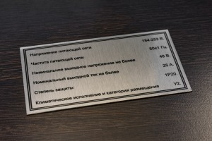 Как правило, для производства шильдов используются алюминиевые пластины толщиной от 0.2 мм до 1.6 мм. Этот материал не подвержен коррозии (не окисляется). К тому же, он очень легкий, что является преимуществом для изделий такого рода. Металл лучше всего позволяет выполнить требования к информационным табличкам. А именно: обеспечивает четкость нанесенных очертаний и долговечность. Рисунок внедряется вглубь металла, поэтому никакие поверхностные царапины не способны разрушить основное изображение. Что положительно сказывается на внешнем виде изделия в целом и на сохранности необходимой информации.