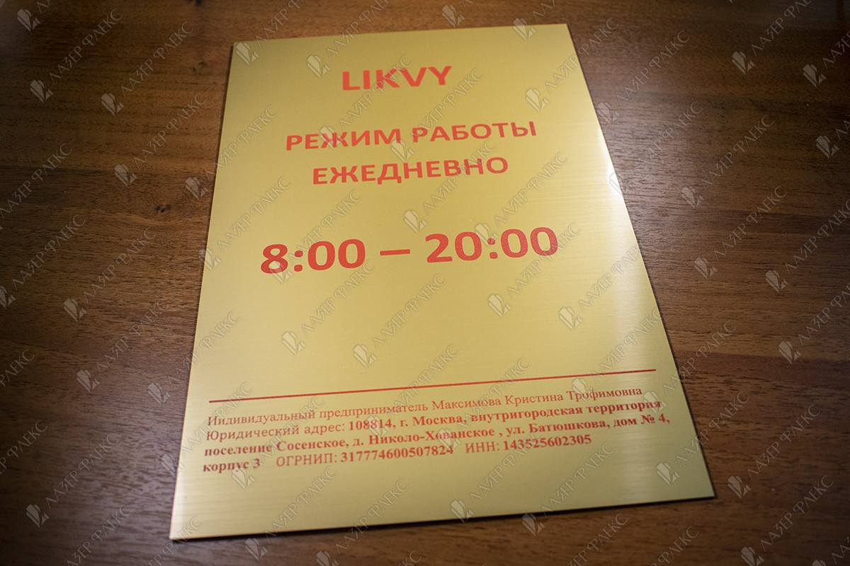 табличка «Режим работы» для студии иностранных языков из алюминия